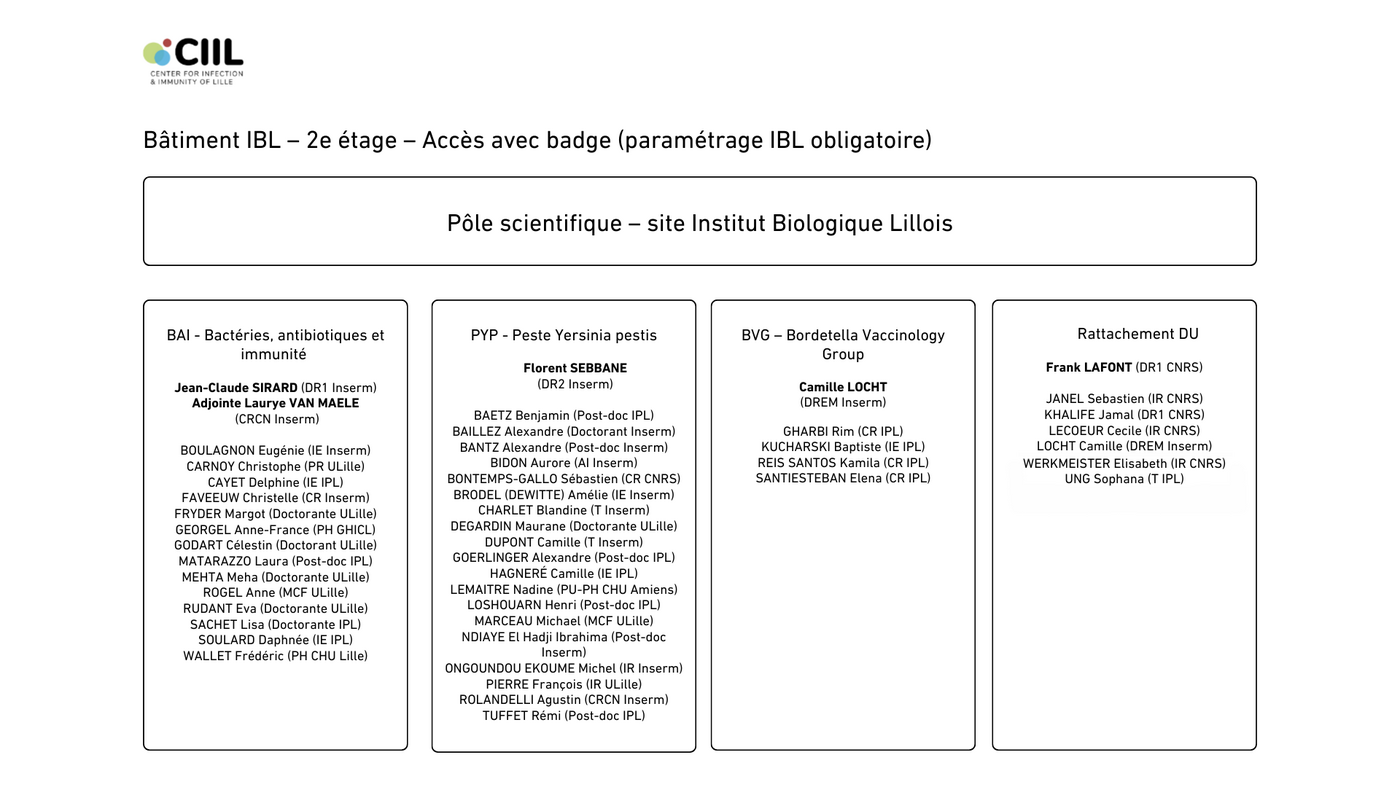 Le pôle scientifique du site Institut Biologique Lillois, situé au 5e étage du bâtiment IBL, regroupe deux équipes de recherche.
