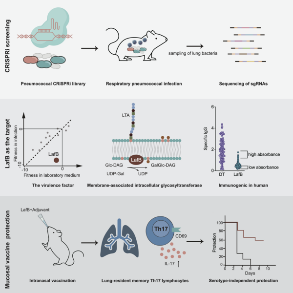 • Liu X, Van Maele L, Matarazzo L, Soulard D, Alves Duarte da Silva V, de Bakker V, Denereaz J, Bock FP, Taschner M, Ou J, Gruber S, Nizet V, Sirard JC, Veening JW. 2024. A conserved antigen induces respiratory Th17-mediated broad serotype protection against pneumococcal superinfection. Cell Host Microbe 32:304-314 e8.